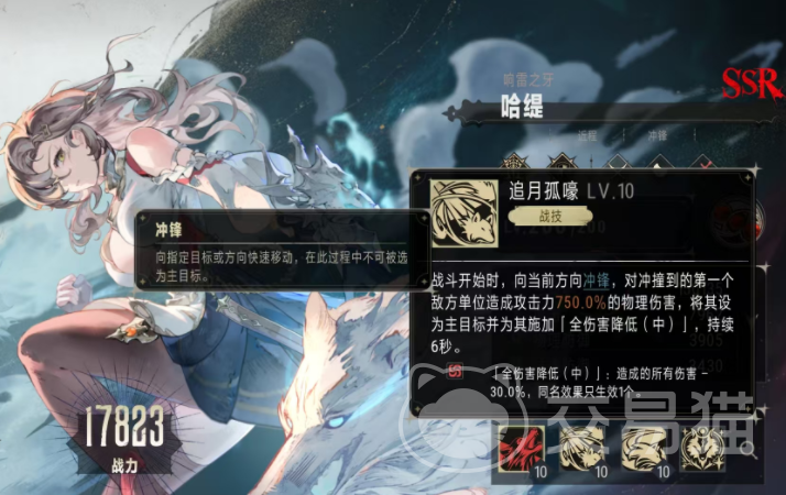 角色还有一个战技技能,名叫追月孤豪,使用这个技能之后,角色会直接向前冲锋,冲撞对方的成员,击中对方之后,可以直接带来250%的伤害,并且还可以直接把这个对手设为主要攻击角色,这样在此后的战斗中就会优先向这个角色施加伤害,在升级之后能带来的伤害更大,高达357%,同样也会优先把这个角色设为主要的攻击目标。