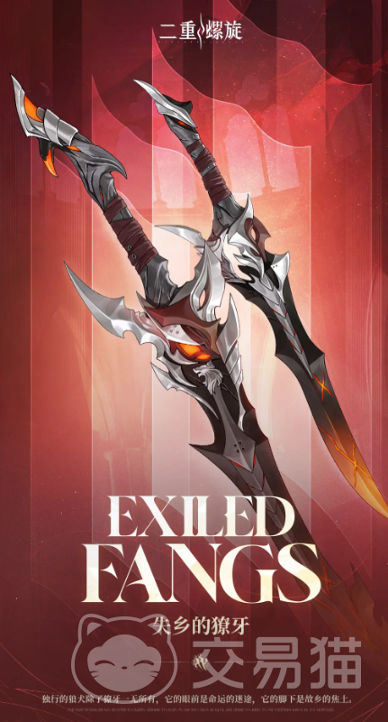 失乡的獠牙在游戏当中,是一个五星级的双刀武器,它的特点是有着“一轻一重”的双刀结构。