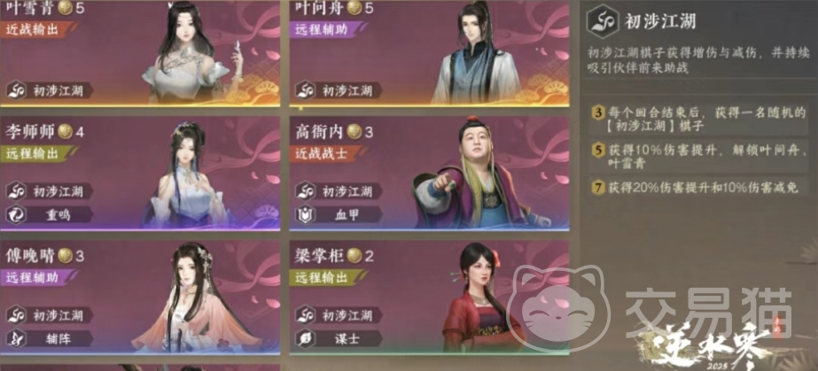也就是说这里有着大家进入江湖时,遭遇的各种伙伴和冤家,比方说曾经的问舟师兄和雪青师姐,还有李师师、傅晚晴等等,他们组合在一起还会激活“初涉江湖”羁绊,带来持续吸引伙伴前来助战的特殊效果。