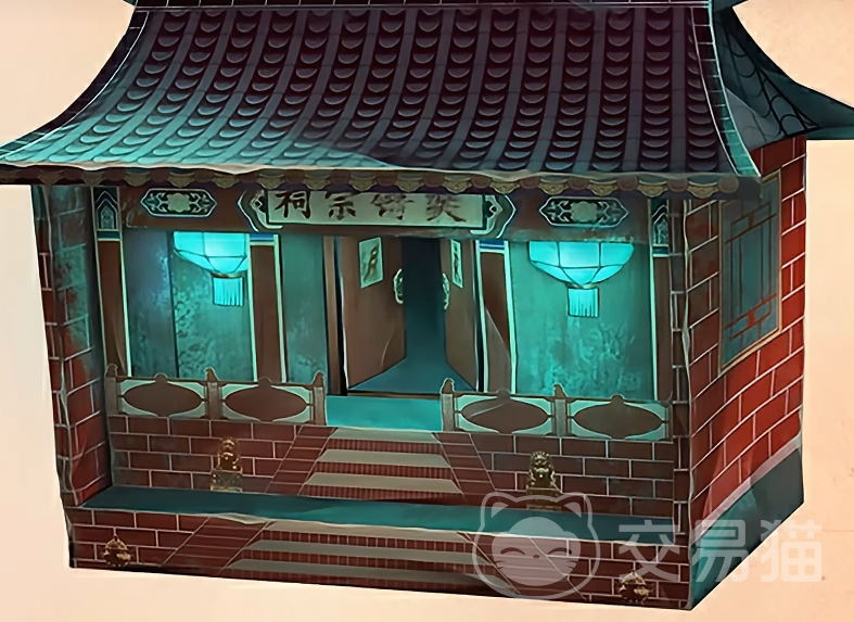 除了时装以外,目前还有一款配套的金挂。这个金挂便是游戏内奘铃村的祠堂。这个祠堂本身的颜色也会有所变化,具体变化的情况应该也是和人物的状态来进行的。
