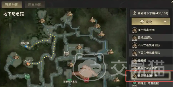 传送后直接前方坐标204,276处,不想自己跑图的,也可以打开当前地图,点击魔物在里面选择暴风骑士团小队,来自动寻路,寻路结束后在附近就能看到灾民了,同样上去对话任务就到此完成了。