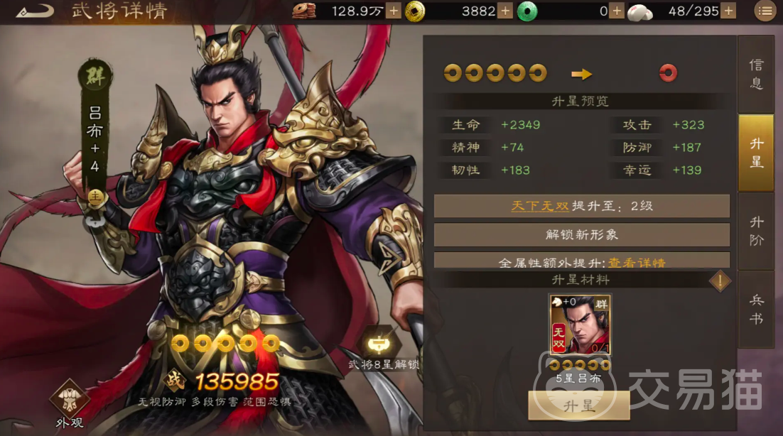 十一星升级材料为一个同阵营八星武将和一个六星本体。