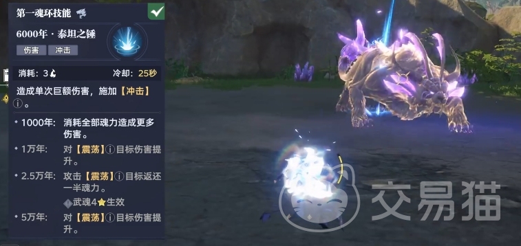 而它的主动魂环技能昊天之锤,一旦施展,便可召唤出一柄巨大的锤子砸向前方的对手,瞬间造成范围伤害,在团战中简直就是大杀器般的存在,再来说一说它的奥义技能泰坦之锤,当玩家用出这一技能后,自身竟会神奇地变成一把巨大的锤子,朝着前方的敌人砸去,给予他们高爆发的惊天一击,作为主要的输出技能,完全可以将其威力拉满。