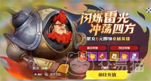 首先在进入游戏之后,玩家们会看到界面上弹出来了一个6元礼包,这个礼包小编强烈推荐大家购买。里面包含的物品是非常丰富的,首先就是大家可以获得一个卓越级别的英雄托尔。在拥有了这个英雄之后,小伙伴们游戏前期基本上就没有什么需要担忧的地方了,遇到一些比较困难的任务也直接可以靠他强推。其次就是里面包含5张招募券,大家可以直接去抽卡,说不定能够获得更好的角色。