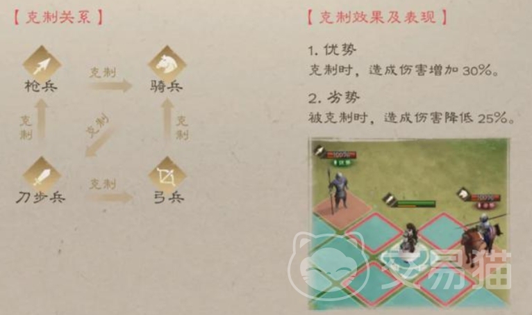 骑兵在战场上对刀步兵具有克制作用,然而却受制于枪兵,当关羽、吕布、孙策等率领骑兵攻击刀步兵时,由于兵种克制的关系,他们所能造成的伤害将会提升30%,这使得他们在面对刀步兵时能够更加迅猛地突破敌方防线,但当他们遭遇枪兵时,由于被克制的缘故,伤害会降低25%,这就要求玩家在指挥作战时,要根据敌方的兵种配置合理调整战术。