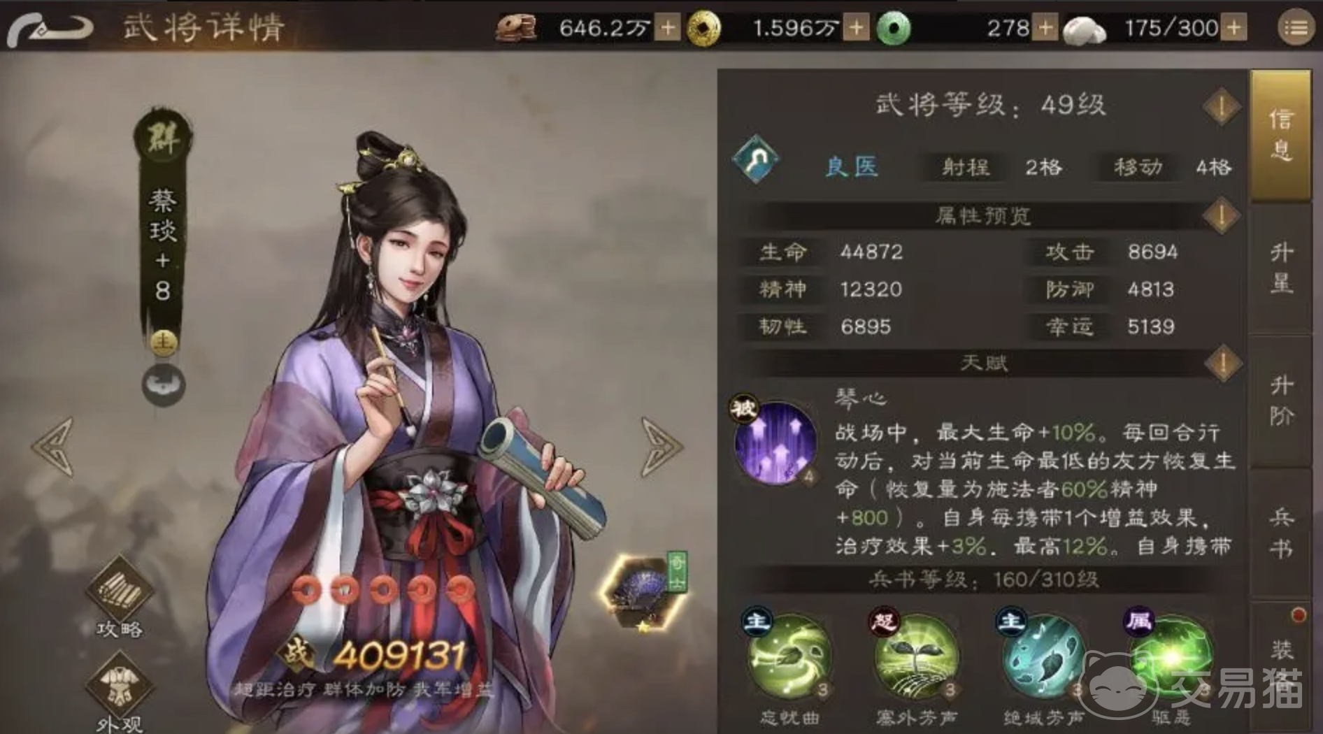 治疗位推荐蔡琰,蔡琰是目前奶量最高的医生,每回合都会自动治疗队伍中血量最低的成员。虽然抽卡概率不算高,但前期可以先用赠送的华楹顶替,等蔡琰到了再替换,过渡也很平滑。