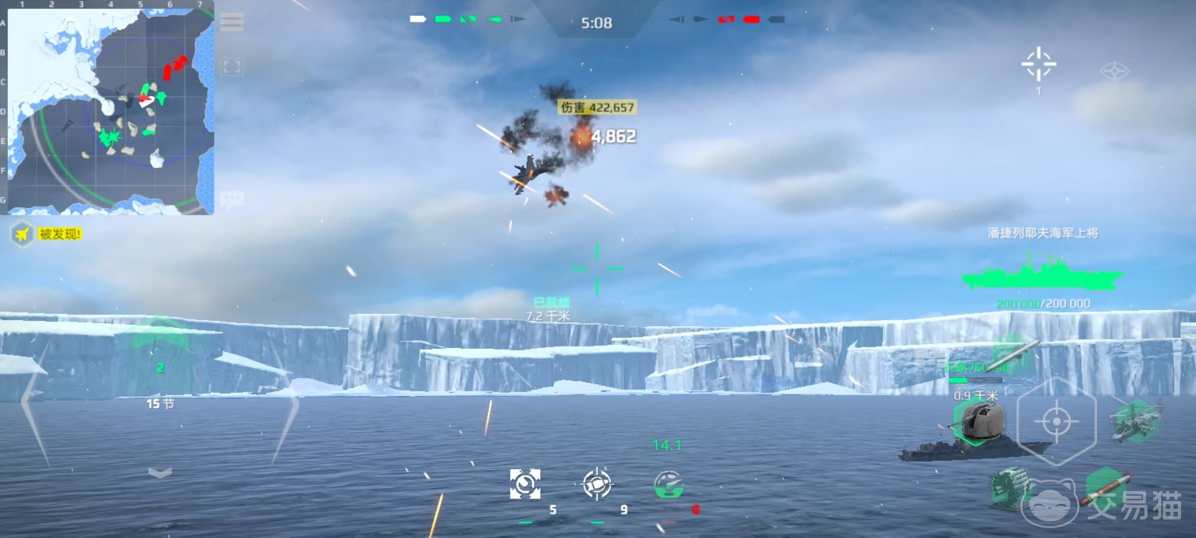 还可以选择北极地图,这张地图敌方舰船比较扎堆,使用主炮或者是导弹伤害比较高的船可以轻松打出海量伤害。最后大家还要掌握一些技巧,开局之后要迅速进攻,优先锁定对方的脆皮船,遇到血量比较高的不硬刚,多在地图中寻找一些残血单位,用导弹实现收割。
