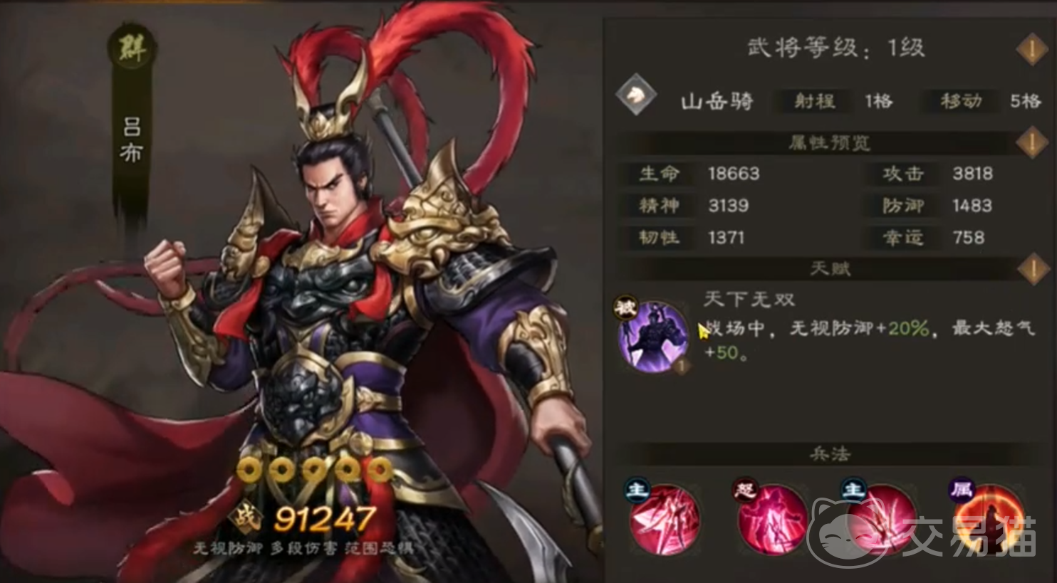 吕布:作为力量型的武将,攻击范围特别的广,暴击率也比较高,在游戏中玩家可以尝试使用方天画戟来作为武器。他作为五维属性比较优秀的武将,玩家如果获得了吕布可以合理的运用,但玩家要注意吕布的智力值特别的低。
