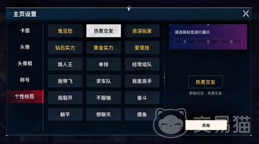 除了ID可以展现个性外,大家也可以通过个人主页去尽情的表达自己的喜好和审美。比如主页设置当中大家能自由选择卡面、头像框、头像这些,也有有趣的称号、个人标签可以戴,比如标签有“鬼见愁“、“摸鱼”、“躺平”等。
