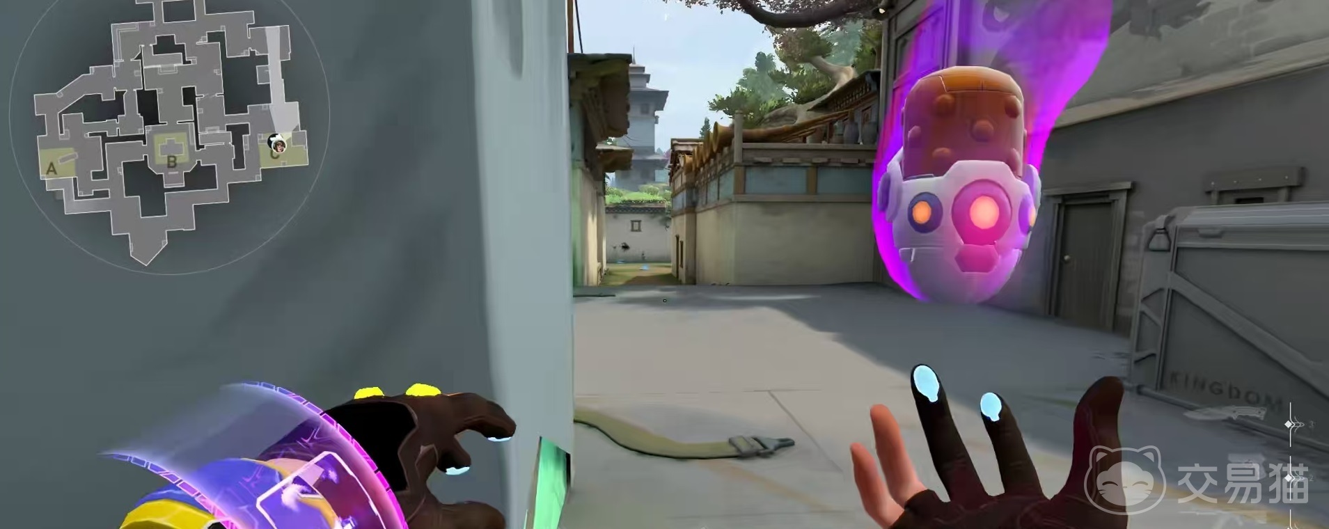 第2个技能是装备隐形的自动哨兵机器人,在部署之后可以自动追踪进入到范围的敌人,只要接触目标就会发生爆炸,造成伤害后还会附带易伤效果。这样既可以为己方提供敌人的位置信息,也可以和其他队友的技能配合起来使用击杀目标。第3个技能纳米蜂群,扔出纳米蜂群手雷后,落地会隐形,激活后释放出一群纳米机器人,对敌人进行攻击。这个技能一般放置在不易被发现的位置,和自动哨兵一起配合起来,在敌人触发哨兵之后激活手雷,这样就可以配合着打出大量伤害。