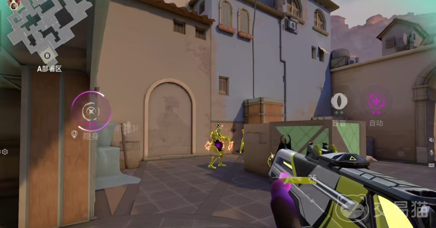 在技能方面,第1个技能睥睨,属于闪光类型的技能,可以使敌方视野收缩,无论是拉枪线还是创造击杀机会都很好用,另外这个技能还可以穿墙。在进攻的时候打在包点高位,可削弱敌方视野,为队友创造进攻的机会。在防守的时候,也可以打在对方进点的路径上,这样起到干扰的目的,防止敌人轻易突破。该技能的效果可以被打掉,所以释放时要把握好时机。