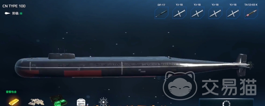 100式核潜艇则是国产骄傲,潜行时不过11节的速度,然而那超30万的血量,堪称游戏里的血牛担当,可惜氧气仅78,续航短板突出,玩家操控时需精打细算战斗时长,好在武装配置豪华,五个导弹卡槽与一个鱼雷卡槽也足够用了,东风17导弹火力输出时威慑力十足,这样的强力装备自是价值不菲,所以一般是氪金玩家才能驾驭,预算紧张的玩家不妨先以台风号过渡。