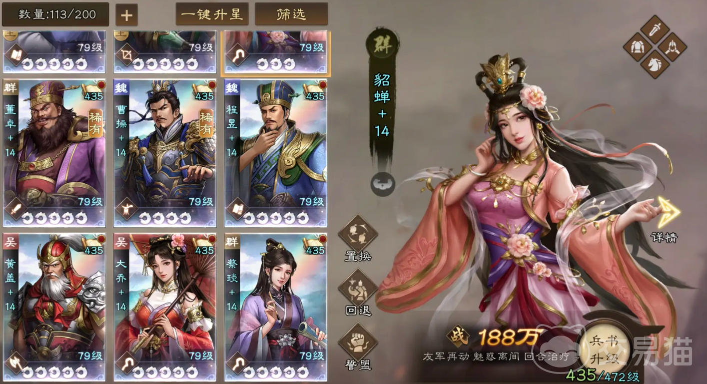 新三国志曹操传武将排名就分享到这了,上文中介绍的都是十分强力的角色,大家在获取到后一定要优先培养,并为他们合理配队,如此才能发挥出强力武将们的实力,让我们开荒更加轻松。