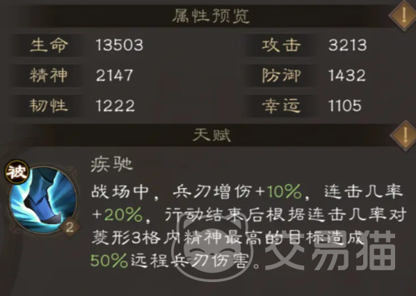 关羽本身最强的地方在于可以二次行动。他的天赋是在击杀敌人之后可以获取再次行动的机会。这个天赋有着4CD的冷却。基本上对付普通敌人他一次便可以将其给直接击败。这样在击败之后他还可以再次进攻一次,这样可以大大的提升玩家们的作战效率。关羽本身的能力很强,同时自身的获取渠道也比较容易,在初期玩家们便可以获取到,之后升星也有着稳定的获取碎片的渠道,这个武将不管是对于新人还是老手来说都是非常好用的一位,玩家们可以重点来进行培养。