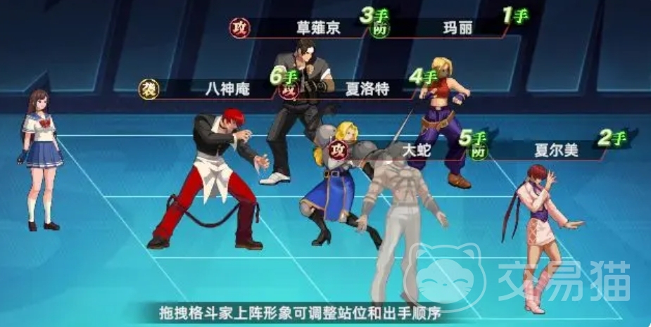 在阵容搭配方面,有着多种选择可以发挥出大蛇的最大威力,其中稳健生存阵容推荐搭配为大蛇+草薙京+八神庵+夏洛特+玛丽+夏尔米,这套阵容注重的是团队的稳健性和生存能力,各个角色之间相互协作,玛丽和夏洛特同时上阵,能够激活两者之间的羁绊,为全体队友增加增益状态,夏尔米的分摊伤害技能,更是为大蛇提供了一层屏障,在战斗中她能够有效地分担大蛇承受的伤害,极大地降低了大蛇开局就被敌方集火秒掉的风险,草薙京和大蛇共同承担团队的主要输出任务,而八神庵则负责收割一轮AOE输出后的残血对手。