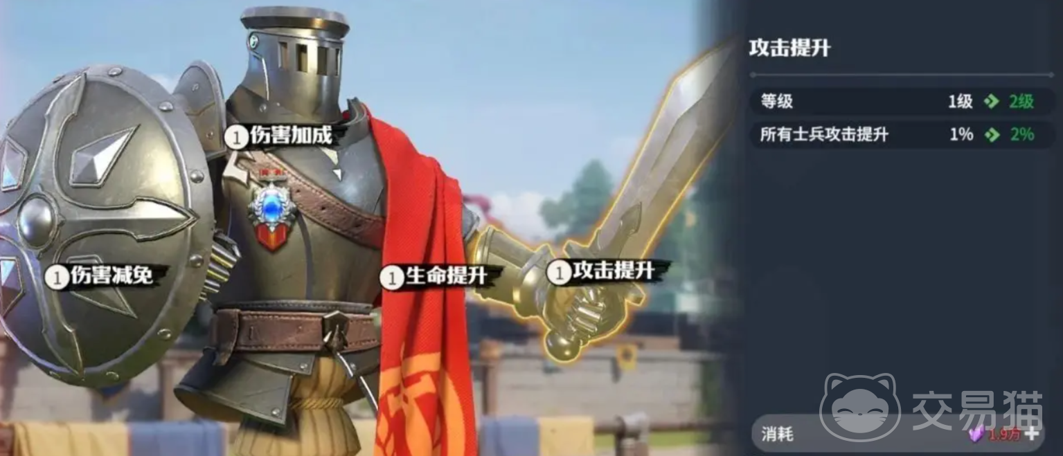 除了等级外,进入练兵场中,可以消耗慧晶,来提升士兵们生命、攻击等各项属性,进一步增强战斗力,这个增强是整体的,所以大家手上有了慧晶后,就可以尽情去练兵场进行提升。