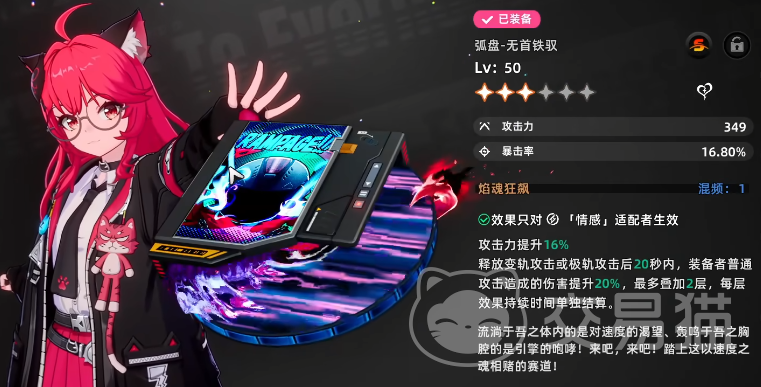 无首铁驭适配情感角色,它能带来攻击力提升16%的初始效果,装备它在使用变轨或极轨攻击后的20秒内,所有的普攻伤害都会提升20%,该效果最多可叠加2层,帮助我们在面对敌人时有更强的输出能力。
