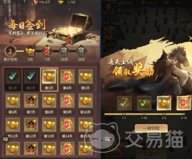从游戏初始阶段来看,新手玩家可以得到比较丰厚的福利。新手10连抽就可以获得强将,在登录之后还可以获得全套的养成资源。即便是零氪玩家都可以轻松的组建起有实力的阵容可以顺利的开启三国征程。
