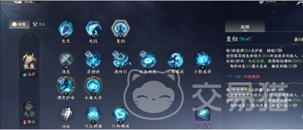 此外,玩家可以选择搭配长生,这是一个核心的辅助技能,可以全方位的强化角色,增强攻击力,还有提升生命的上限。同时还可以将体质直接转变成防御基石,让玩家在游戏中变得更有优势。