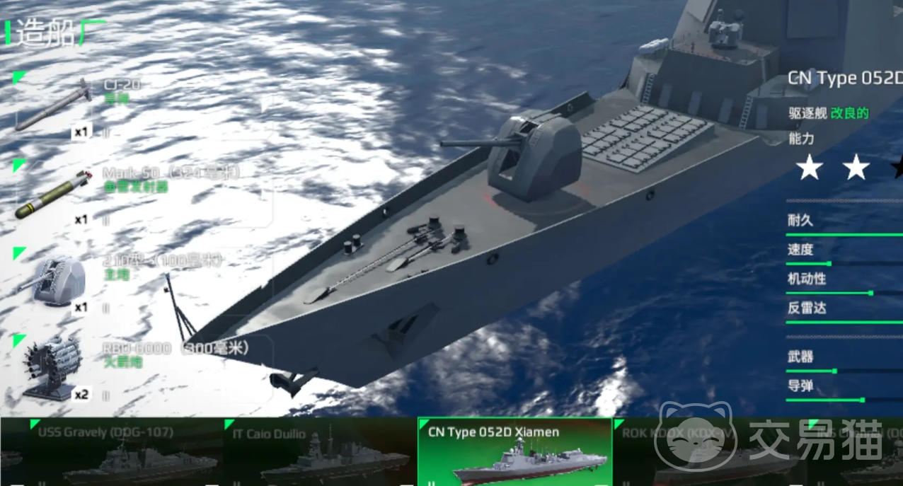 导弹可以直接选择海星导弹,该导弹拥有1.5万高伤害贴脸输出效果,可以直接秒杀敌方驱逐舰,如果玩家并未拥有海星导弹,也可以使用拉布莫斯导弹进行替换,拉布莫斯导弹拥有极强的射程,并且可以进行双发连射,但爆发能力略逊一筹。