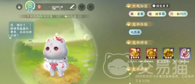 宠物对话功能的核心,就是宠物拥有了和玩家沟通的能力。你再也不用只通过宠物的表情或者行为来揣测它们的心情了,它们现在可以主动开口,和你谈天说地。不过,这一功能并不会自动解锁,你需要有足够的亲密度并获得一件神奇的道具——“萌宠翻译机”。这个道具的制作方法也很简单,只要在“身份”里动动手指,你就可以轻松搞定。