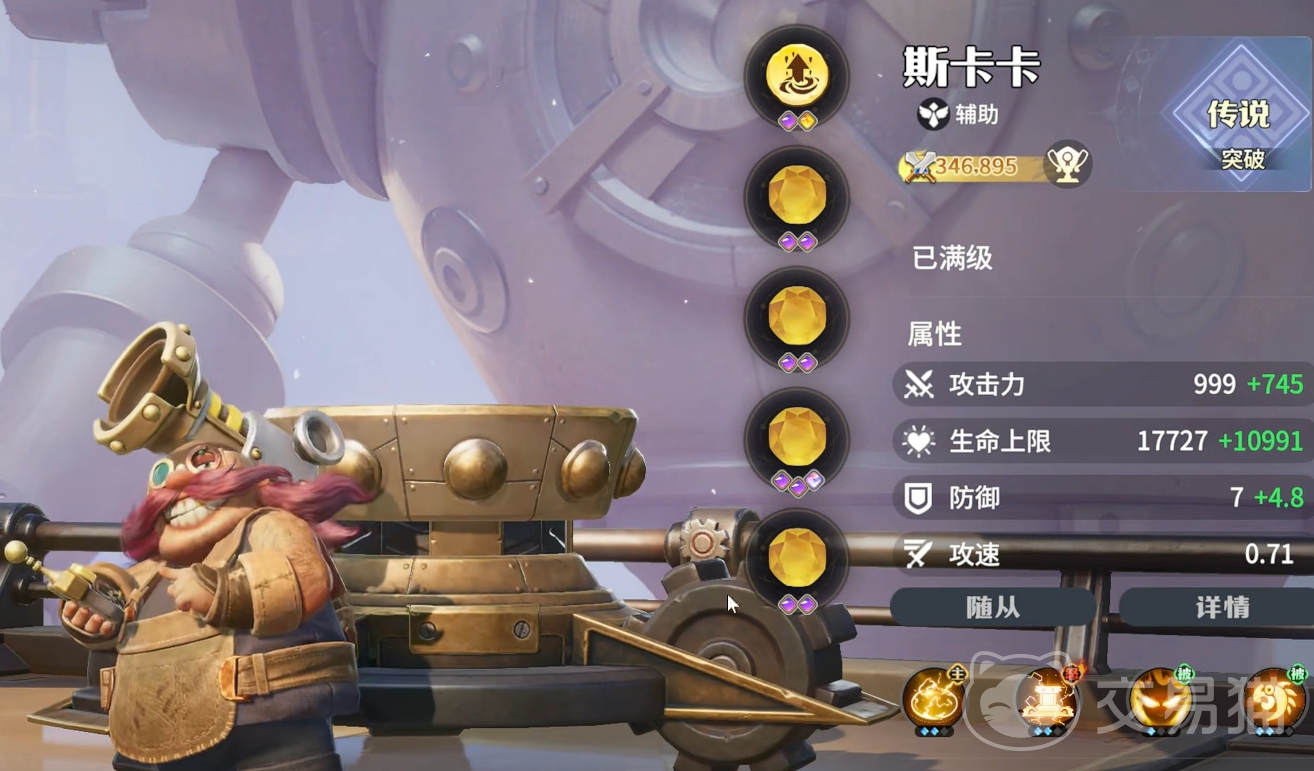 能招出有护卫特性的机器人,可吸引敌军来对机器人发动攻击,进而协助肉盾英雄来保住后排,可有效地针对刺客类英雄,是很多流派都会携带的一名辅助英雄。