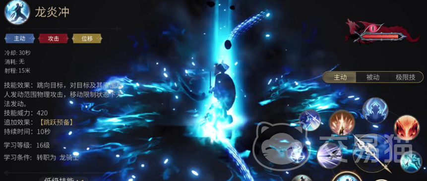 紧接着,龙骑士的标志性技能龙炎冲也同样令人期待。就像在端游中一样,释放后带有突进效果的龙炎冲不仅伤害高,而且可以无缝衔接后续技能【跳跃】。后者是纯粹的伤害技能,帮助你快速逼近敌人进行打击,展现出龙骑士敏捷的特点。