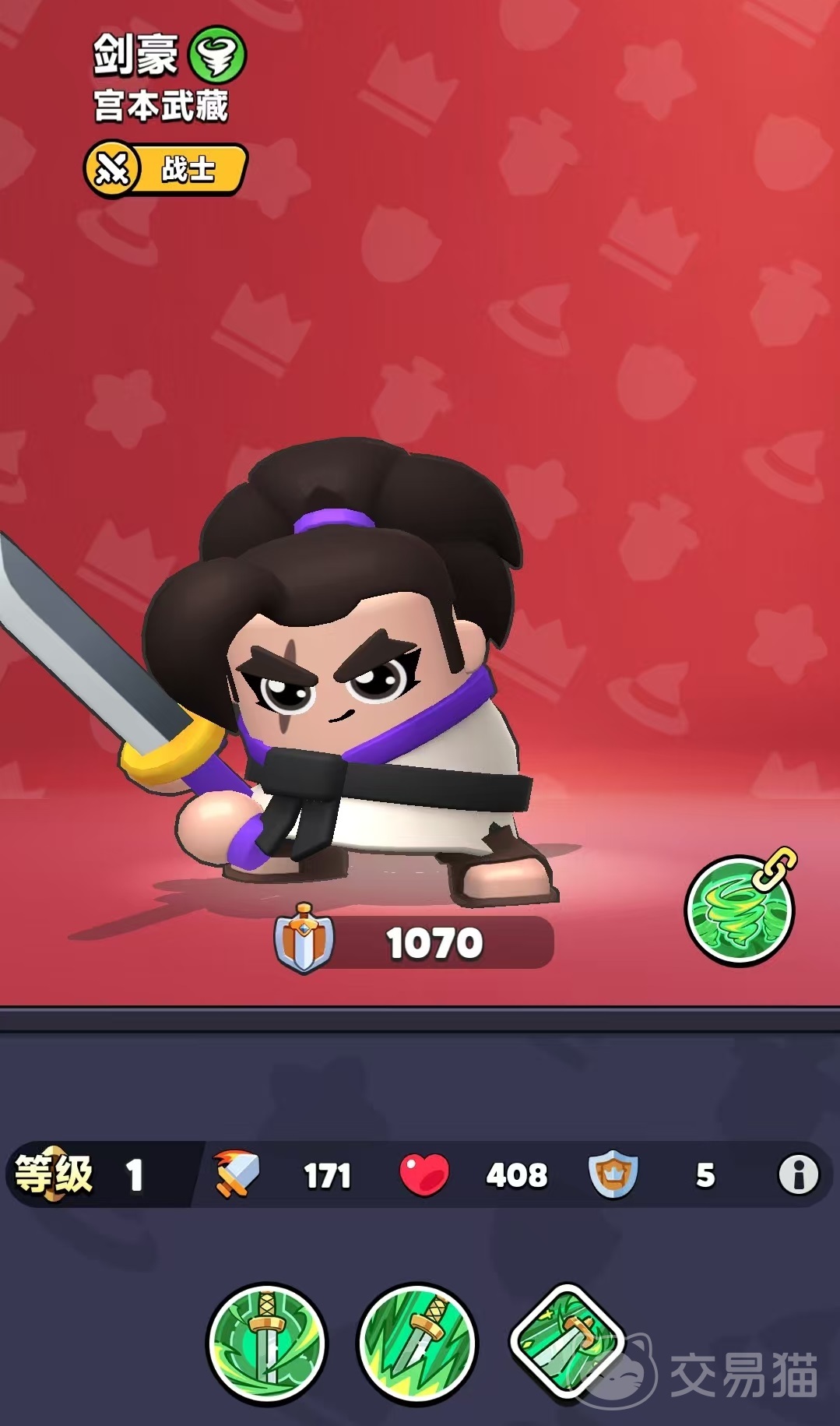 剑豪号称游戏中的近战之王,拥有非常强的爆发输出能力,可以在短时间内对敌人造成大量伤害,迅速收割敌方的残血单位。技能覆盖范围广,能够同时对多个敌人造成输出,很适合清理小怪和应对成波涌过来的敌人。主要输出技能是旋风斩,可以瞬移到随机敌人附近进行大范围攻击。