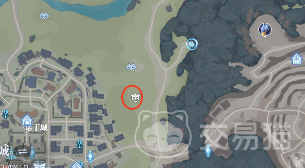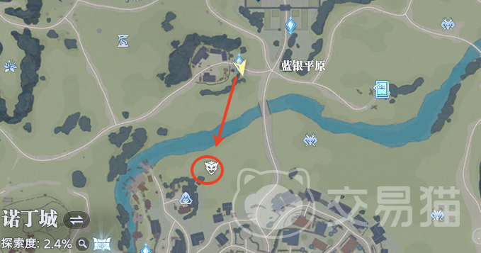 然后是第二只,这只是在诺丁城地图顶部区域的蓝银平原下方,大家可以先传送到“蓝银平原·西”这个传送点,然后向下方走,在“邪矛魂师”这个据点的右上方就可以找第二只。