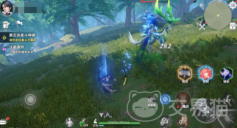 卤阿鹿30级,不会主动攻击玩家,但会在玩家攻击后进行回击,攻击招式主要有冲撞,顶飞,以及扇形范围的眩晕技,整体难度不大,大家可以贴着鹿的侧身慢慢打,当出现红色扇形圈提示的时候就即时闪避躲开。