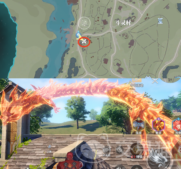 第五处回忆碎片是在斗灵村附近,先传送点,然后就可以看到在房顶的火龙,非常显眼,还是很好找的。