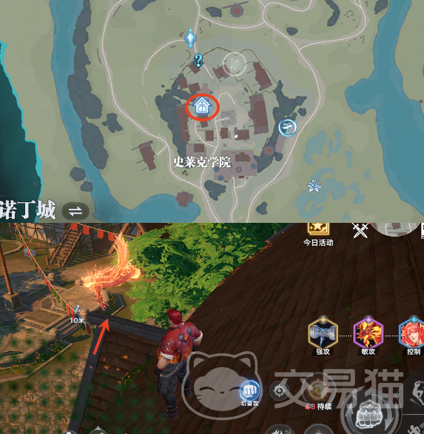 第四处是大地图左下,史莱克学院的办公室,注意是在办公室门外的房顶上,如图所示靠近就可以收集到了。