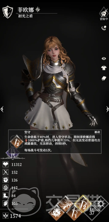 她虽然可能不是最强大的坦克,但一定是目前最肉的,自身超高的格挡能力和稳定的眩晕,让其成为在前排抗boss的最佳人选,她的被动“坚守”能在生命值低于40%时,进入坚守状态,此时自身将获得1000%护盾,格挡的概率提升20%,大招是对周边六格角色的群体控制。