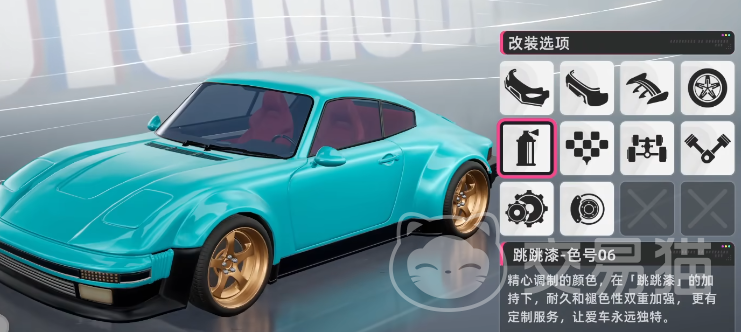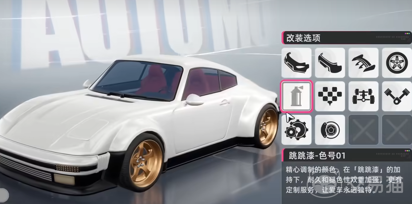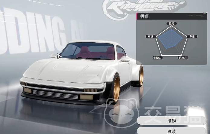 可以看到页面会有改装和维修两个不同选项,点击维修,会让大家的车子直接变成新车,没有任何撞击的磨损,而点击改装,就会正式进入到改装页面中,在改装页面里大家可以做出各种改动。