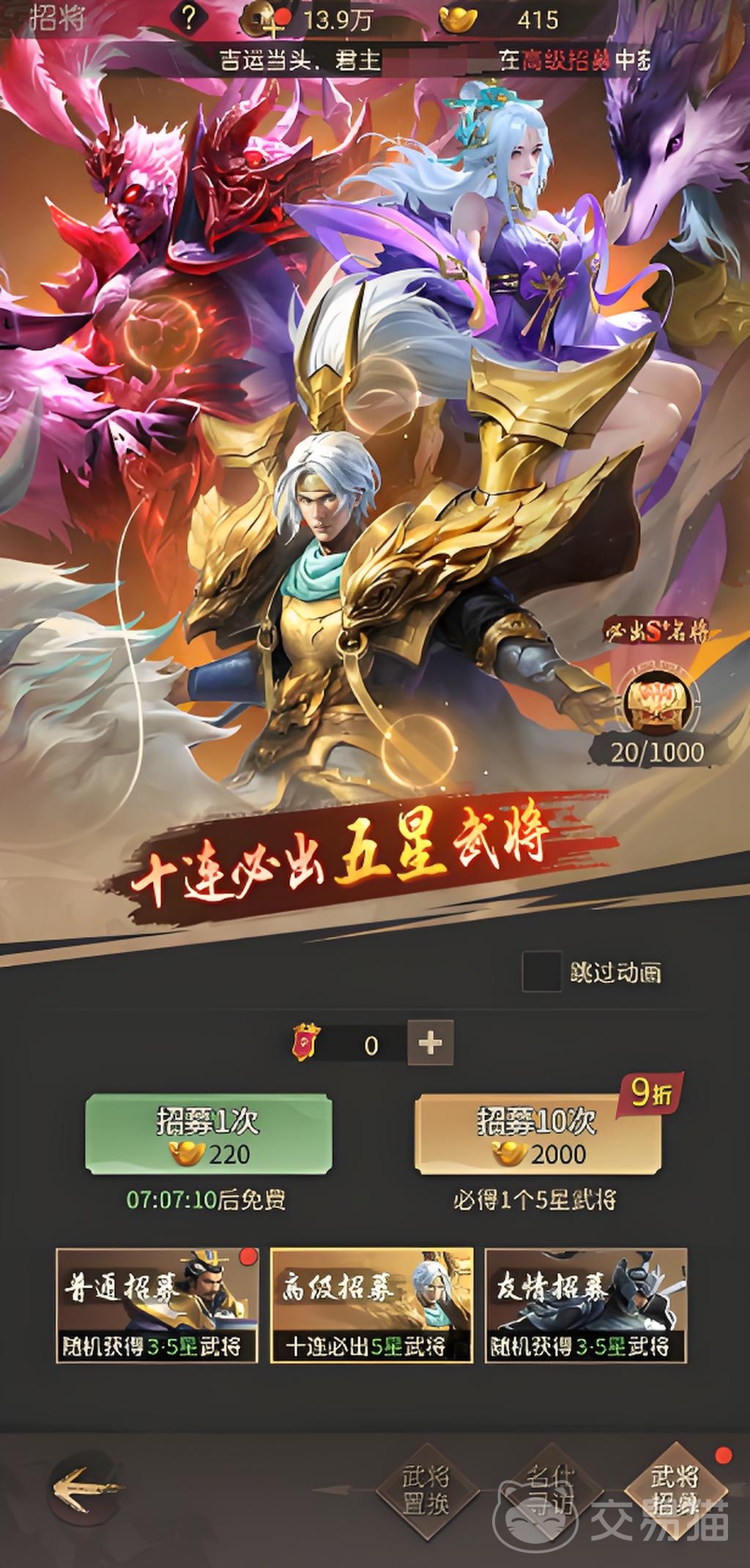 首先玩家们进入游戏就是要快速获得资源,高效收集元宝就是第一步,获得元宝的途径有刷新招募令、购买将星石和快速作战,通过招募令便宜购买150元宝,一周买五次将星石就可获得300元宝,通过挂机进行快速战斗就可获得大量的元宝,这样就可有稳定的元宝去抽卡。
