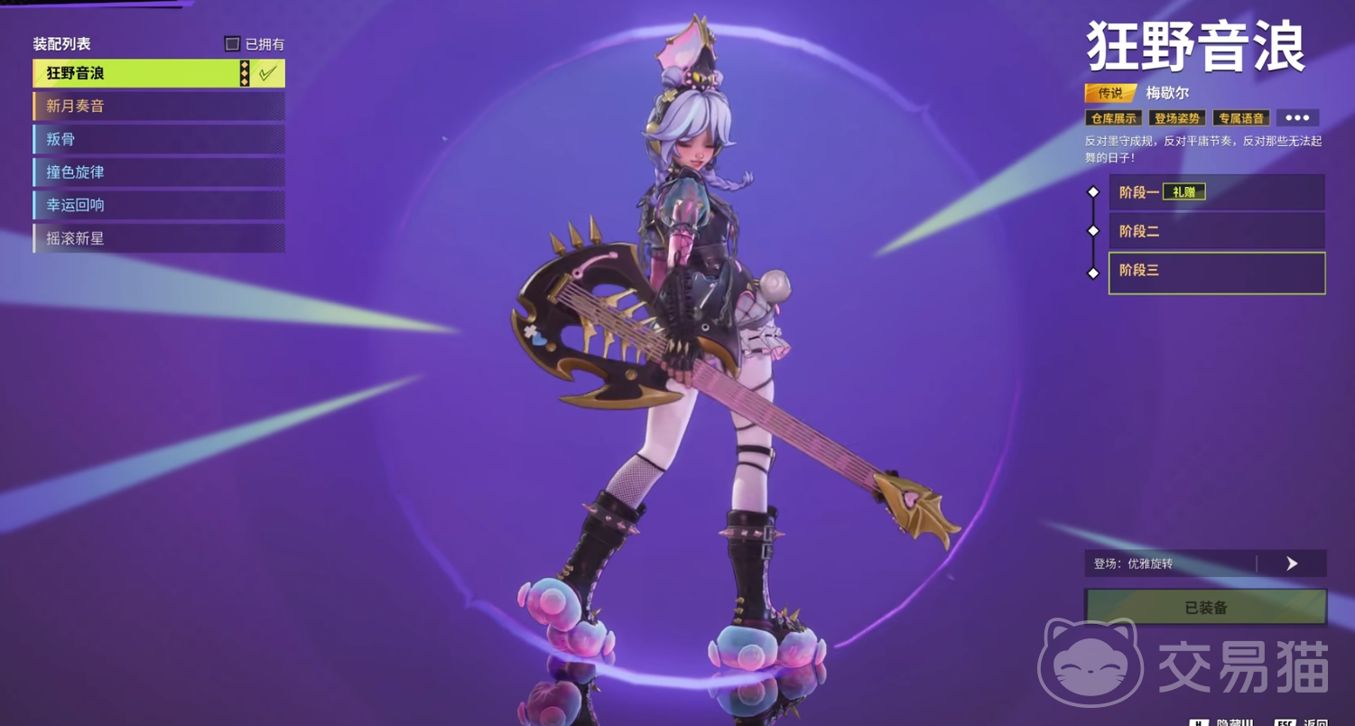 传说级排面担当!皮肤分3阶段进化,最终形态黑裙+炫酷黑吉他,攻击自带摇滚特效,潮流摇滚范拉满,打架都像开演唱会,喜欢摇滚音乐的玩家不要错过哦。