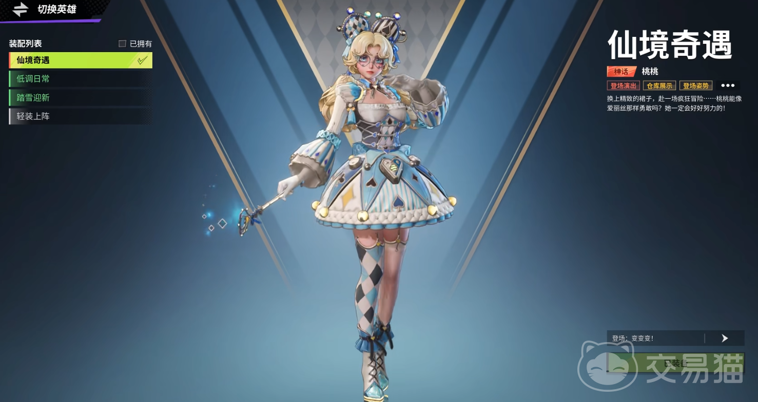 桃桃首款典藏皮,童话×潮流双buff叠加,蓝白主色调+蓬松裙摆+夸张灯笼袖,细节直接拉满(头饰、魔法棒、甚至龙龙充电宝都有特效)。抽限时卡池获取,穿上秒变“爱丽丝”,战斗都像在逛童话仙境~