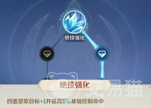 这里的职业每升一级即可获得一点天赋,所以大家切记不能浪费。第一个建议加绝技强化:四面楚歌目标加一,并且能提高5%控制的命中率。这样不仅可以多控制一个对手,而且还可增强控制能力,要是对方免疫力强,就可继续点提升控制率的天赋。