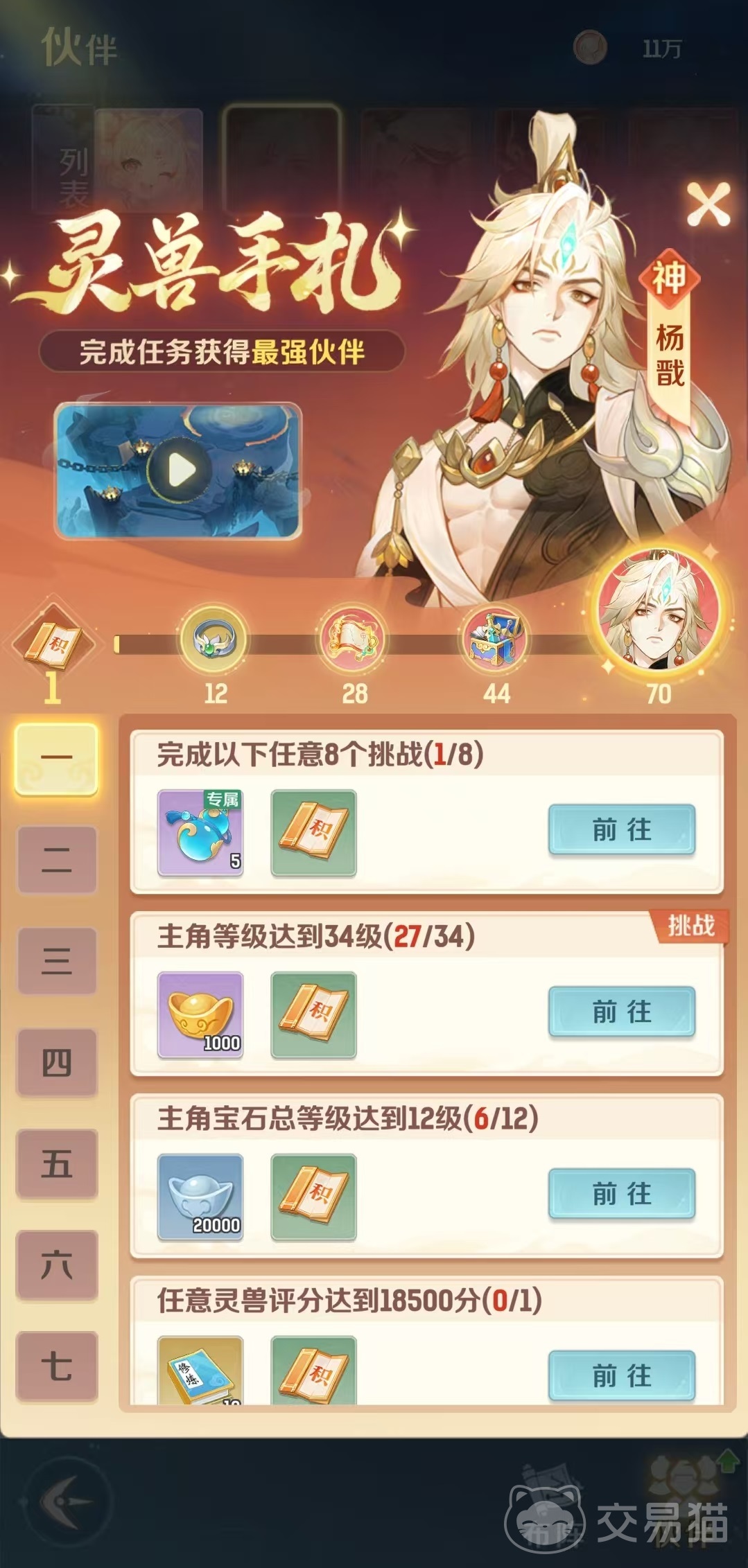 二郎神这个伙伴的获取比较独特,它是在灵兽手札中解锁的伙伴,等级达到26级后就可以解锁灵兽手札,在这里达成要求,完成相关的任务,就可以直接获得杨戬二郎神了。所以这个化神期的宠物也是相对比较简单容易获取的一个,只要大家有足够的时间和耐心去做任务就可以拿到手。