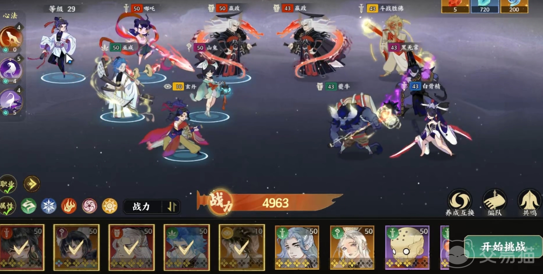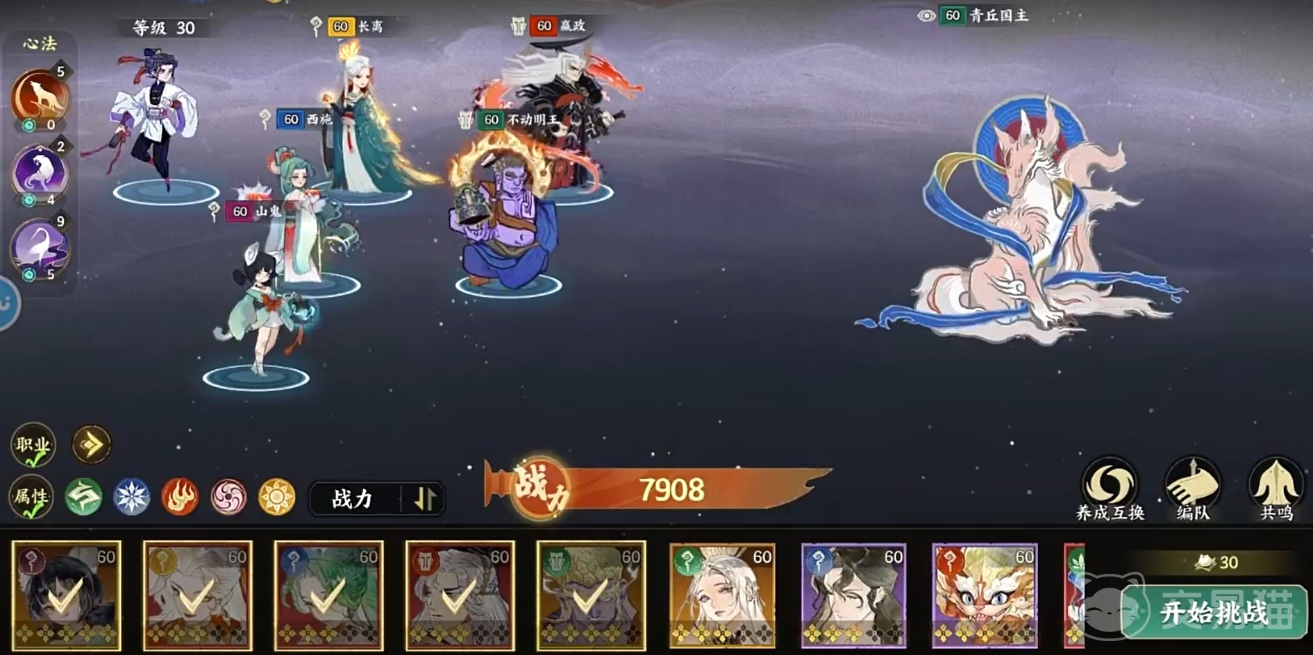 这是一套以火系角色为主的阵容配队方案,在玩家拥有哪吒和后羿时,就可组建这套输出能力非常强悍的队伍。而在前排的选择上,优先选择火系的前排,例如嬴政、貔貅等,确保阵容至少拥有四名以上的火系成员,以此来获得更多的加成。