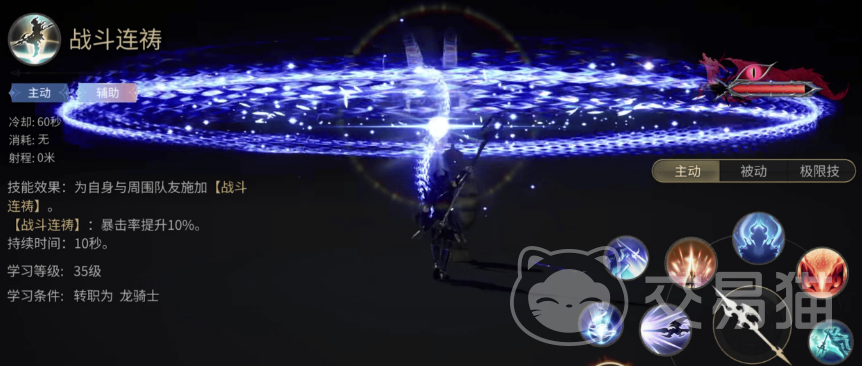 进入技能层面,最引人注目的便是“苍天龙血”这个技能了。相信不少老玩家对它的名字都不陌生,它和最终幻想14端游中的“蓝龙血”有些许相似,开启之后,龙骑士的攻击伤害将得到提升,同时,击中敌人时还能够延长“苍天龙血”的持续时间。这种增益机制为龙骑士带来了不小的输出空间,合理利用这个技能就能让你在战斗中始终保持良好的伤害输出。