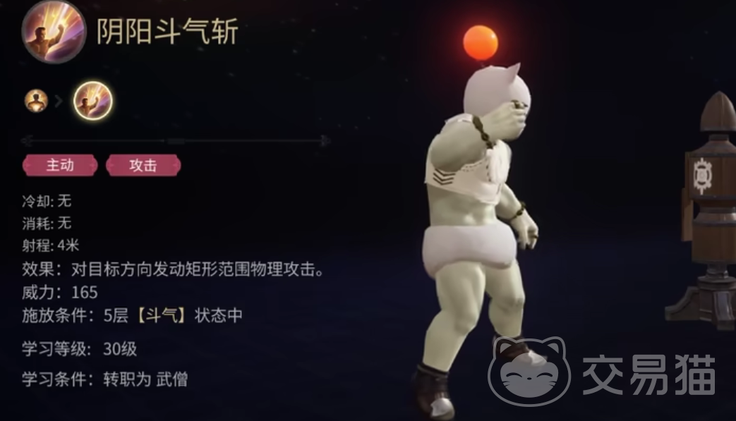 斗气在暴击后,会有一定概率获取,累计到五层时,则可以释放阴阳斗气斩,该技能属于aoe攻击。