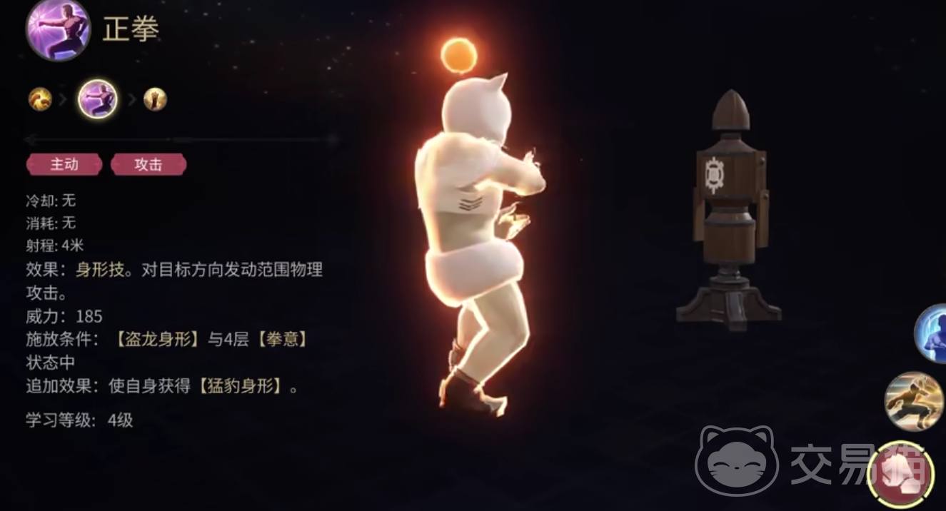 在这之后,玩家点满拳意,则可以直接强化,下一次的身形技能伤害,值得一提的是,渡魂旋风脚,属于27秒冷却CD的群体aoe伤害,隶属于能力技,拥有三百点威力,无论是属于aoe战斗,还是在进入到单体战斗期间,都可以释放。