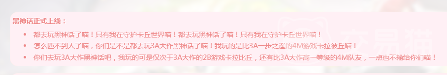 这其实就是玩家所使用的喵言喵语想表达的就是游戏好像有一些不行。例如作用于组队的环节中,喵言喵语是游戏中玩家和玩家之间交流的一种独特方式,习惯性在每一个句子后面全部都会加上喵字。
