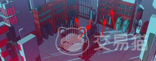 需要在守卫背对着玩家的时候选择奔跑,躲避到守卫看不到的地方,继续朝着箭头的方向走。玩家可以来到一大堆杂物的后面,通过扔一块石头的方法就可以去吸引守卫。