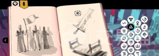 在伪装成战士之后继续的往上面走,一直往前走,此时就可以看到操练战士的对话,在看到两人的对话之后就可以获得新的字体。一旦获得新的自己,则意味着这一次的剧情就能够顺利的解锁,玩家只需要打开以下的日志,按照下面的图就可以迅速的完成破译。这也是一个比较简单的操作方法。