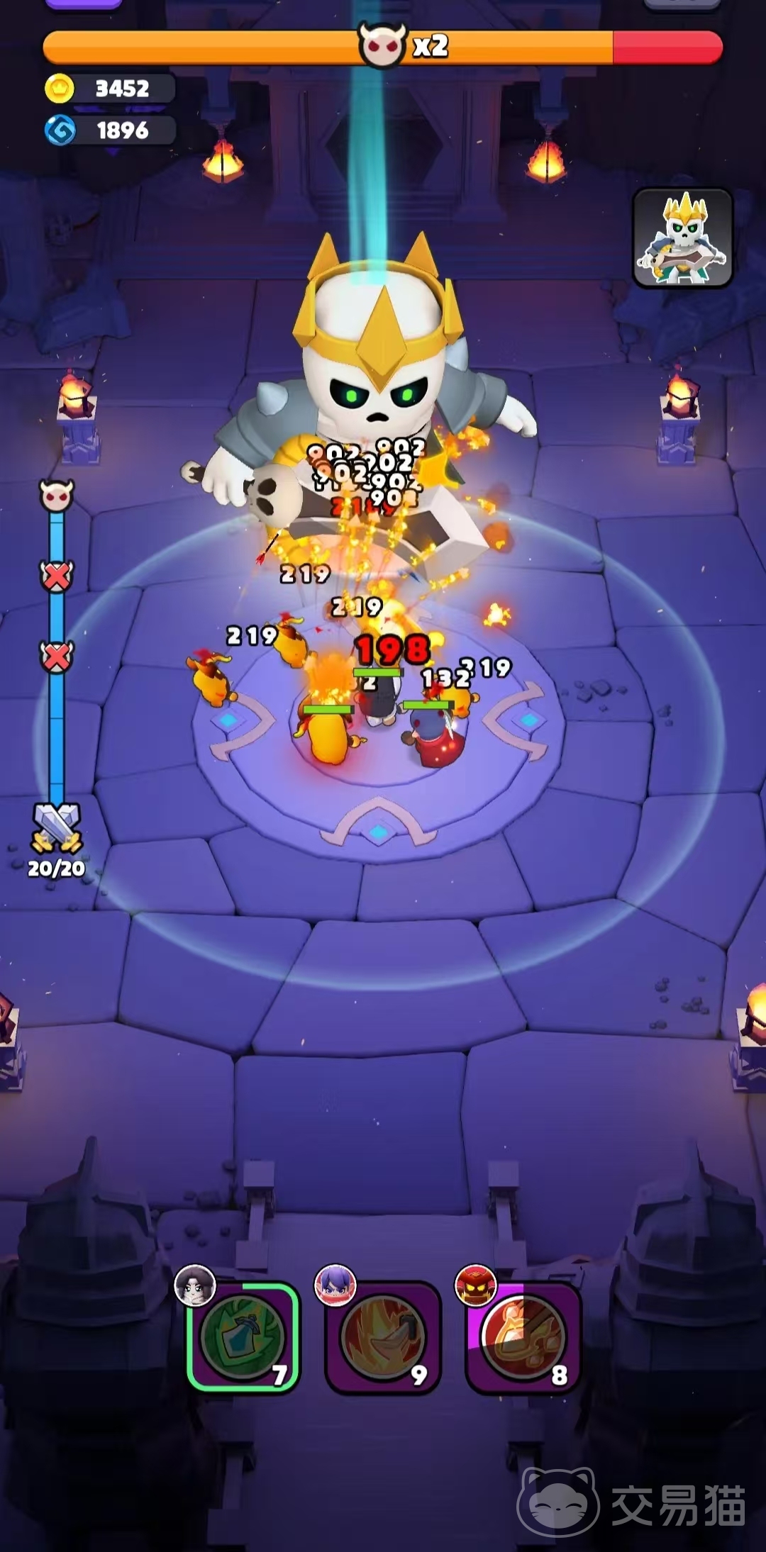 第八关的守关Boss是暗影之王,其拥有三个阶段,第一是普通形态,会释放直线弹幕,走位躲避即可。第二是分身形态,它会召唤3个幻影,但是真身会偶尔闪烁红光,玩家可以集中攻击真身。第三个为狂暴形态,这个模式Boss技能是全屏AOE+追踪弹幕,所有小编建议玩家保留大招在此阶段爆发输出。