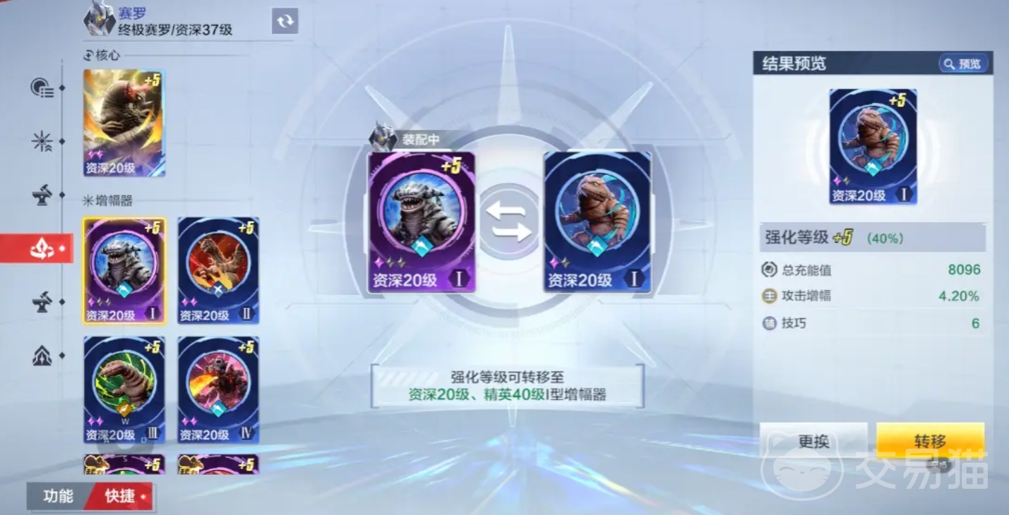 大家可以点击能量转换选项,通过这个操作,就能够将这些被淘汰的核心和增幅器转换为火花能量,而火花能量的作用也很大,它可以在火花能量商城中兑换稀有的神级核心或增幅器,这就好比是把大家手中的旧资源进行了一次升级再造,说起增幅器的主要功能,它在游戏的1- 4章节就会直接开启,是一个重要的核心战力养成功能。