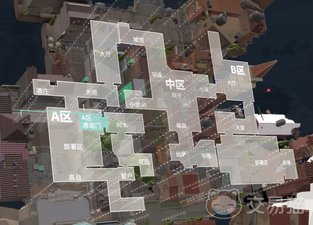 对于这张地图的名字,很多玩家都是感到陌生的,因为在玩家的俗称当中,这张地图有着流传更广的名字,那就是“义境空岛”。而在这张地图上,游戏则是主要分为三个区域,从左往右,分别叫做A区中区和B区。而在AB区的边缘,则是有着可以开关的独特的通道门。