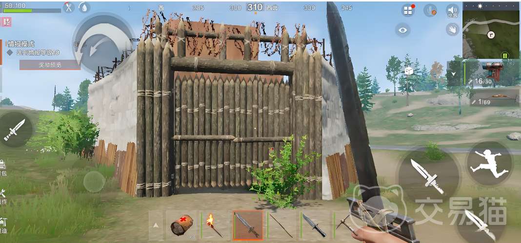 游戏初期因为我们的资源比较紧缺,大家可以先使用木头来做围墙,木头的成本非常低而且材料获取相对要更容易一点,围墙建造好了以后,我们就可以去建造储物箱、工作台以及床铺了。